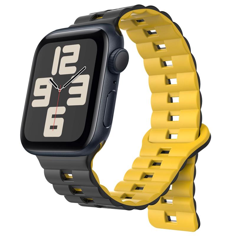 Για Apple Watch SE 2023 44mm, Λουρί Σιλικόνης με Μαγνητικό Κούμπωμα Αντίστροφης Πόρπης, Δύο Χρωμάτων (Γκρι+Πορτοκαλί)
