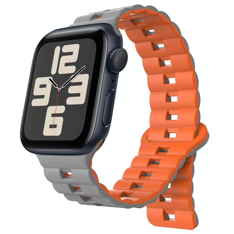 Για Apple Watch SE 2023 44mm, Λουρί Σιλικόνης με Μαγνητικό Κούμπωμα Αντίστροφης Πόρπης, Δύο Χρωμάτων (Γκρι+Πορτοκαλί)