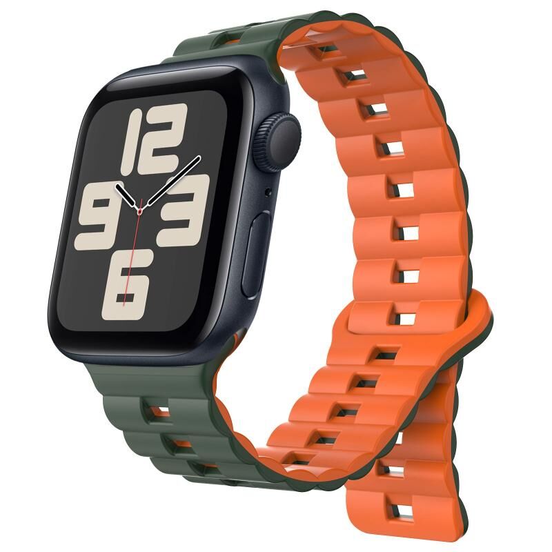 Για Apple Watch SE 2023 44mm, Λουρί Σιλικόνης με Μαγνητικό Κούμπωμα Αντίστροφης Πόρπης, Δύο Χρωμάτων (Γκρι+Πορτοκαλί)