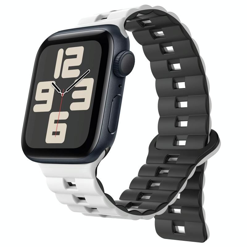 Για Apple Watch SE 2023 44mm, Λουρί Σιλικόνης με Μαγνητικό Κούμπωμα Αντίστροφης Πόρπης, Δύο Χρωμάτων (Γκρι+Πορτοκαλί)