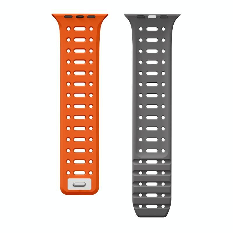 Για Apple Watch SE 2023 44mm Λουράκι Σιλικόνης Μαγνητικό με Μονό Ακροδέκτη (Πορτοκαλί Γκρι)