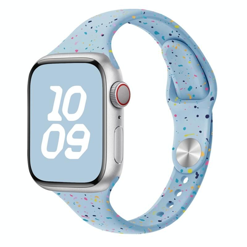 Για Apple Watch SE 2023 44mm Λεπτό Στυλ Πολύχρωμες Κουκκίδες Σιλικόνης Λουράκι Ρολογιού (Ανοιχτό μπλε)