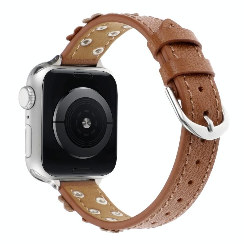 For Apple Watch SE 2023 44mm Stitched Flower Leather Watch Band(Brown)