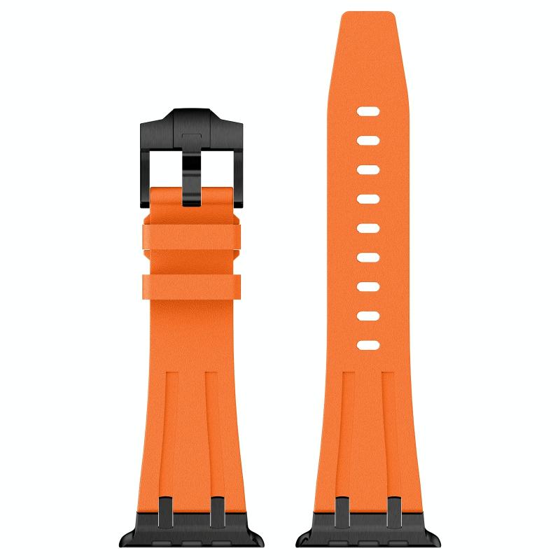 For Apple Watch SE 2023 44mm Stone Grain Liquid Silicone Watch Band(Black Orange)