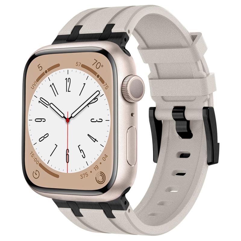 For Apple Watch SE 2023 44mm Stone Grain Liquid Silicone Watch Band(Black Starlight)
