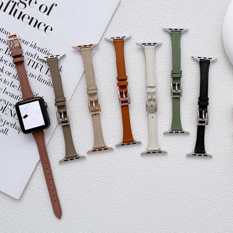 Λουρί ρολογιού για Apple Watch SE 2023 44mm, λεπτό γνήσιο δερμάτινο, σε σχήμα Τ (Σκούρο καφέ)