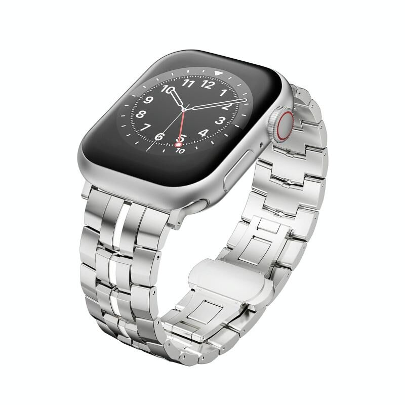 Για Apple Watch SE 40mm Αγκράφα Πεταλούδας Μεταλλικό Μπρατσέλι Ρολογιού 5-Χάντρες (Ασημί Λευκό)