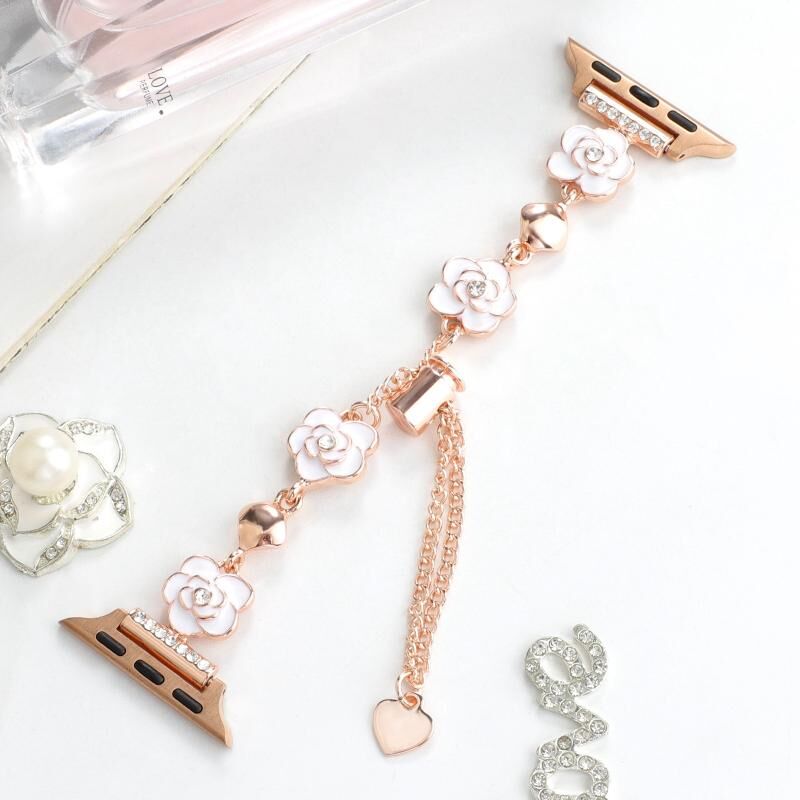 Για Apple Watch SE 40mm Μεταλλικό Μπρασελέ Λουλουδιού Καμέλια (Μαύρο Χρυσό)