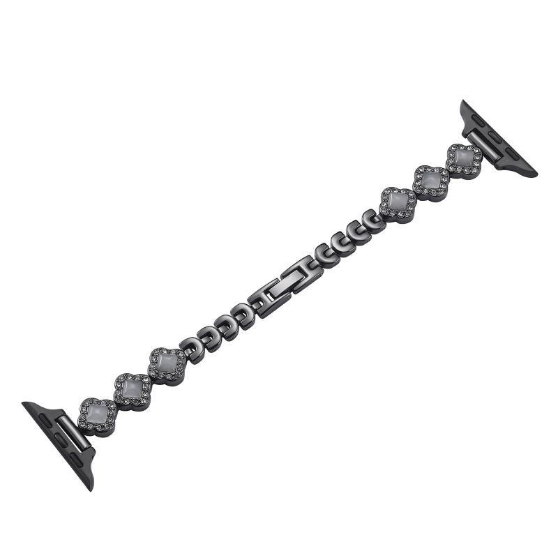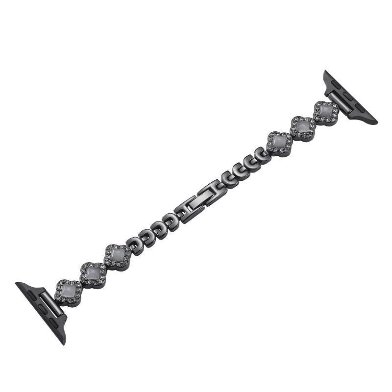 For Apple Watch SE 40mm Diamond Four-leaf Clover Metal Chain Watch Band(Black)