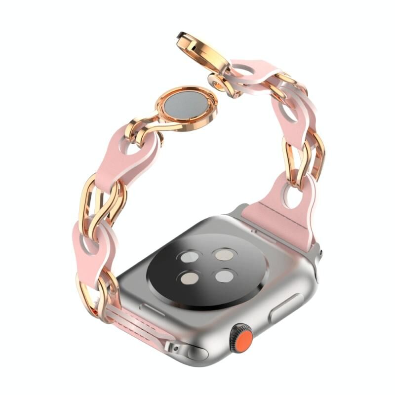 Για Apple Watch SE 40mm Κοίλος Δερμάτινος Αλυσίδα Μαγνητικό Κούμπωμα Λουράκι Ρολογιού (ρόζ)