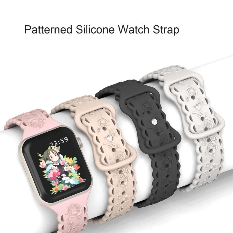 Για Apple Watch SE 40mm Δαντέλα 3D Ροζ Χαραγμένο Λουράκι Σιλικόνης (Μαύρο)