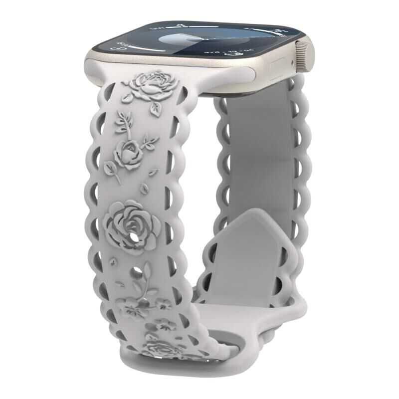 Για Apple Watch SE 40mm Δαντέλα 3D Ροζ Χαραγμένο Λουράκι Σιλικόνης (Starlight)
