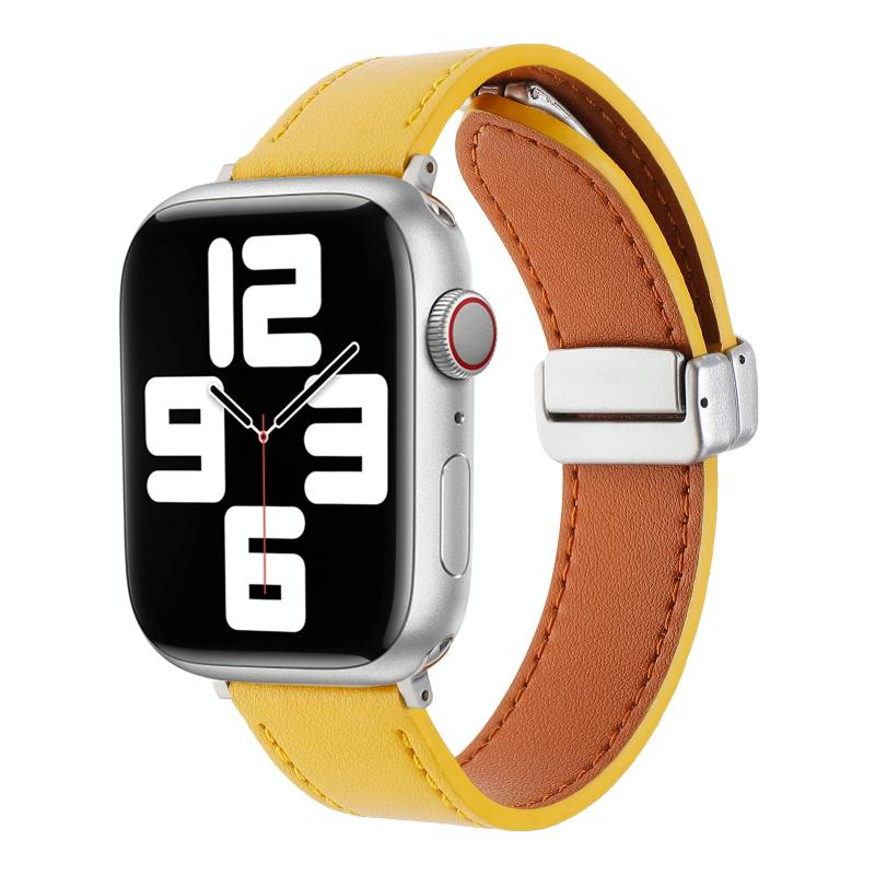 Για Apple Watch SE 40mm Μαγνητικό Κούμπωμα Δερμάτινο Λουράκι (Κίτρινο)