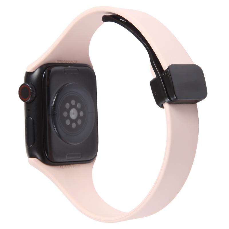 Για Apple Watch SE 40mm Μαγνητικό Κούμπωμα Λεπτό Λουράκι Σιλικόνης (ρόζ)