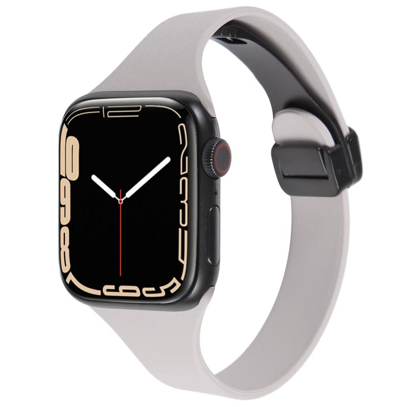 Για Apple Watch SE 40mm Μαγνητικό Κούμπωμα Λεπτό Λουράκι Σιλικόνης (Γκρι βράχου)