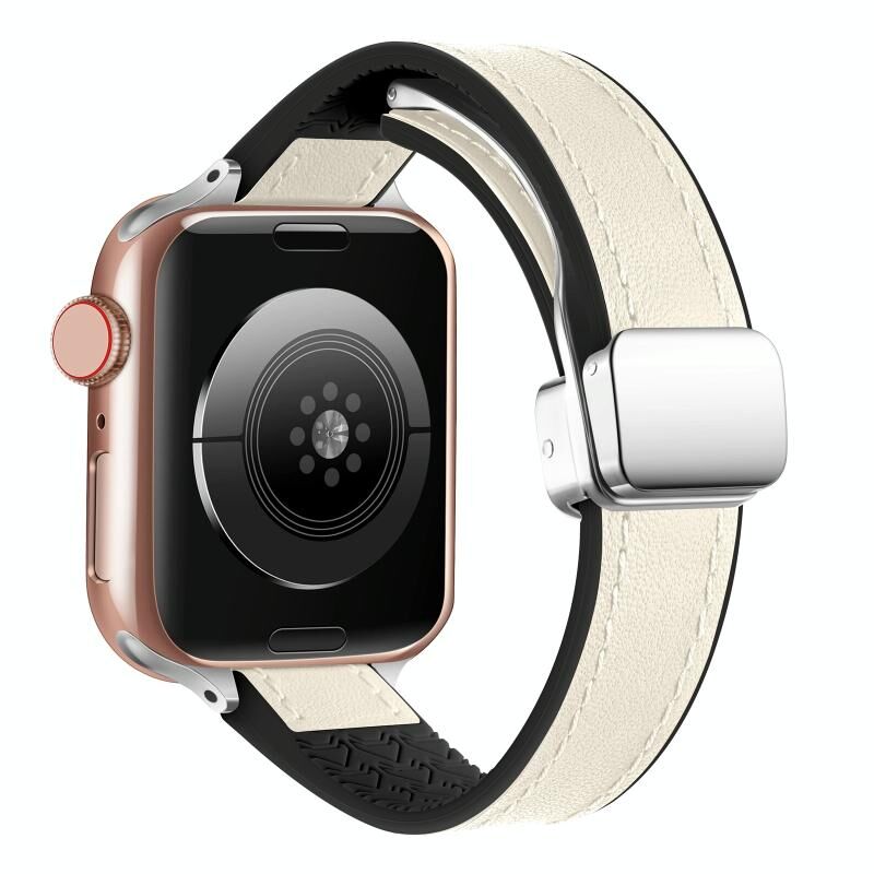 Για Apple Watch SE 40mm Μαγνητικό Δερμάτινο Λουράκι με Σιλικόνη (Κόκκινο Ρόδι)