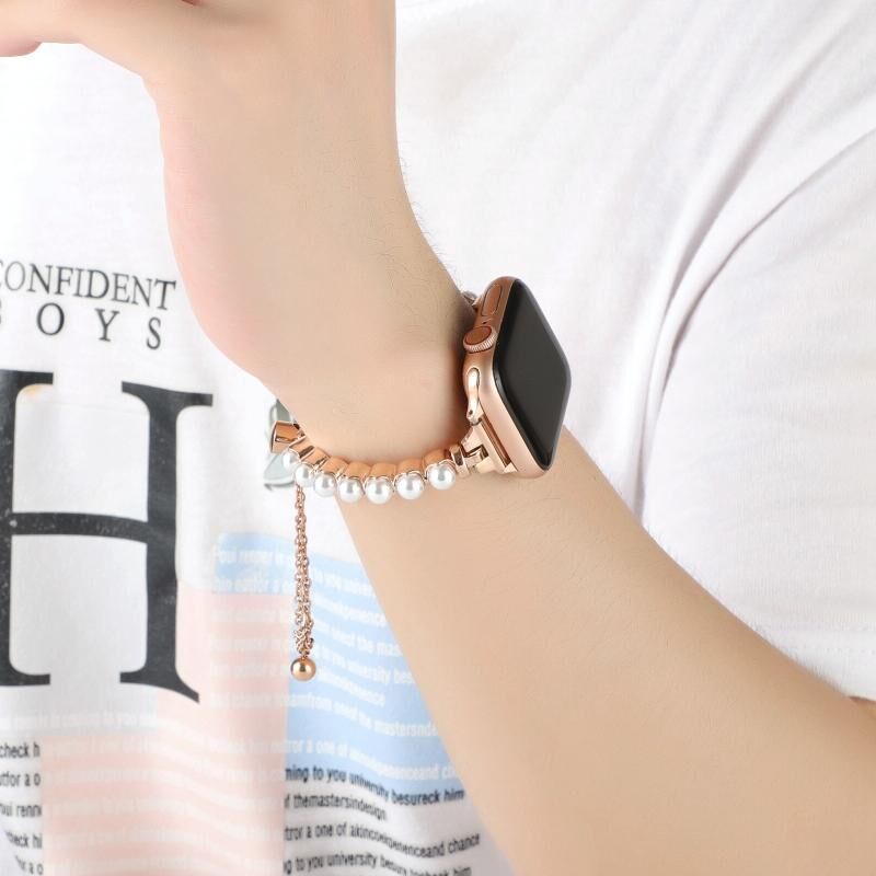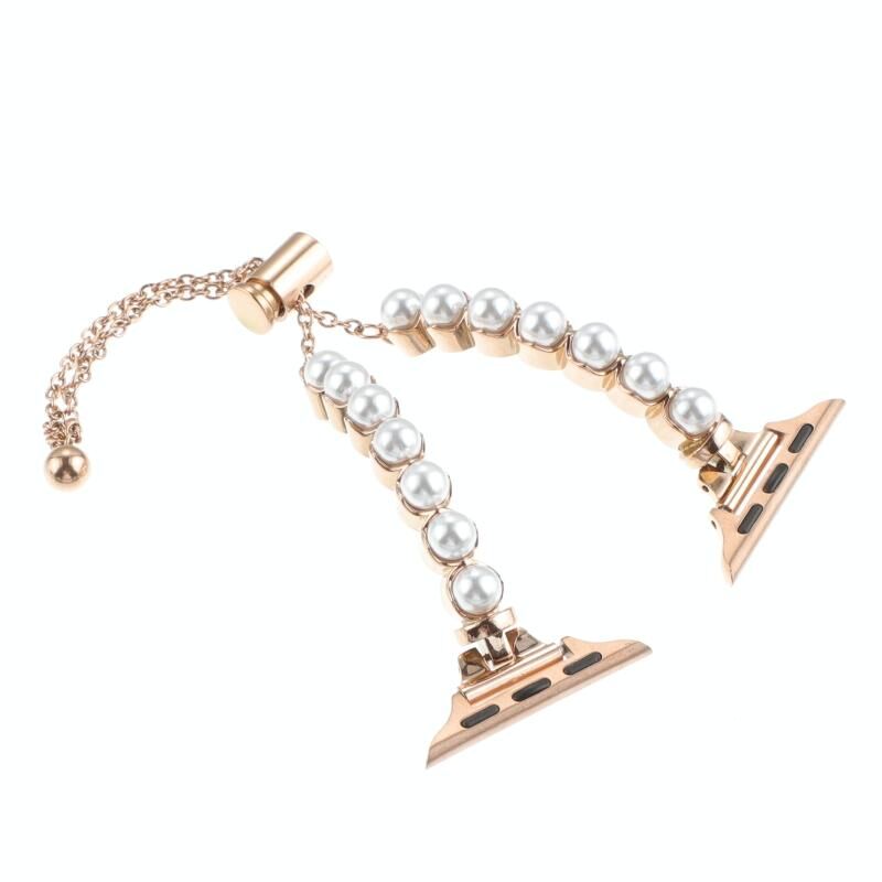 Για Apple Watch SE 40mm Πέρλα Βραχιόλι Μεταλλικό Λουράκι Ρολογιού (Ροζ χρυσός)
