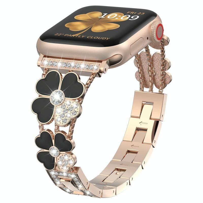 Για Apple Watch SE 40mm Λουρί ρολογιού Petal Metal Diamond (Μαύρο+Λευκό)