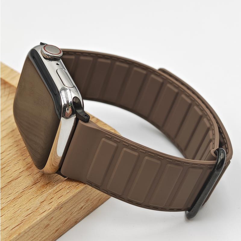 For Apple Watch SE 40mm Reverse Buckle Magnetic Silicone Watch Band(Black Buckle Coffee)