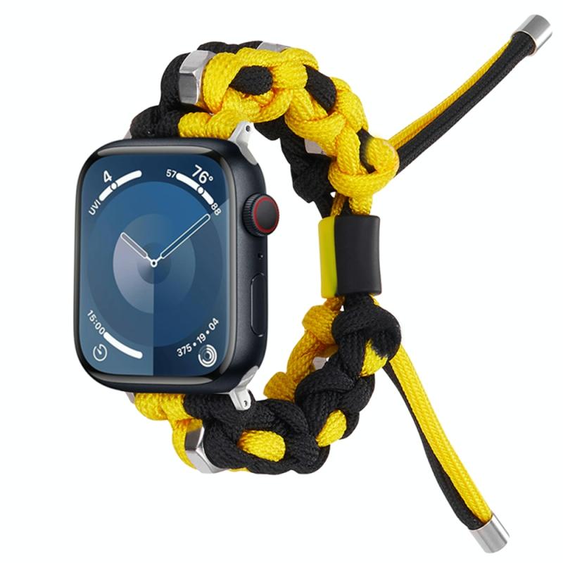 For Apple Watch SE 40mm Screw Nut Dual-Color Braided Paracord Watch Band(Black Yellow)