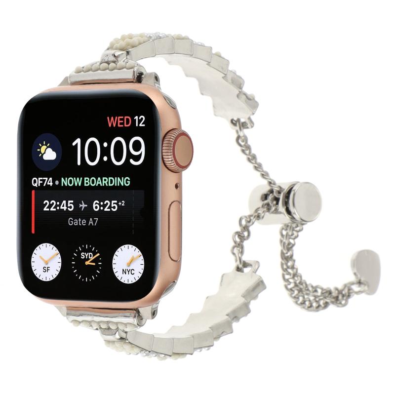 For Apple Watch SE 40mm Shell Beads Chain Bracelet Metal Watch Band(Beige White Silver)
