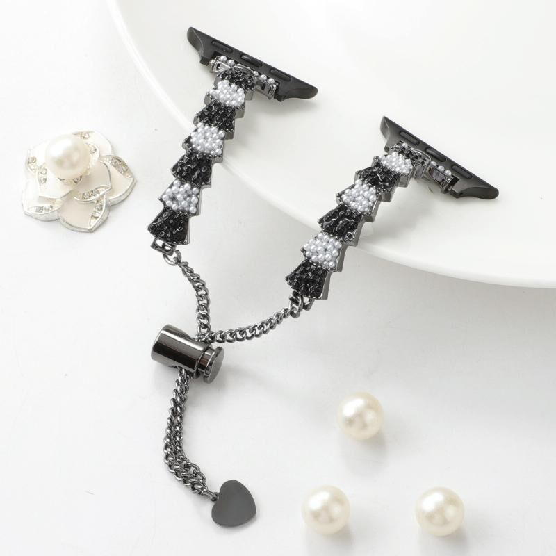 Για Apple Watch SE 40mm Κέλυφος Μαργαριταρένιας Αλυσίδας Βραχιόλι Μεταλλικό Λουράκι Ρολογιού (Μαύρο Λευκό)