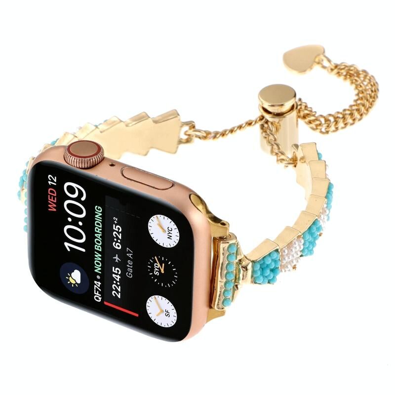 Για Apple Watch SE 40mm Κέλυφος Μαργαριταρένιας Αλυσίδας Βραχιόλι Μεταλλικό Λουράκι Ρολογιού (Μαύρο Λευκό)