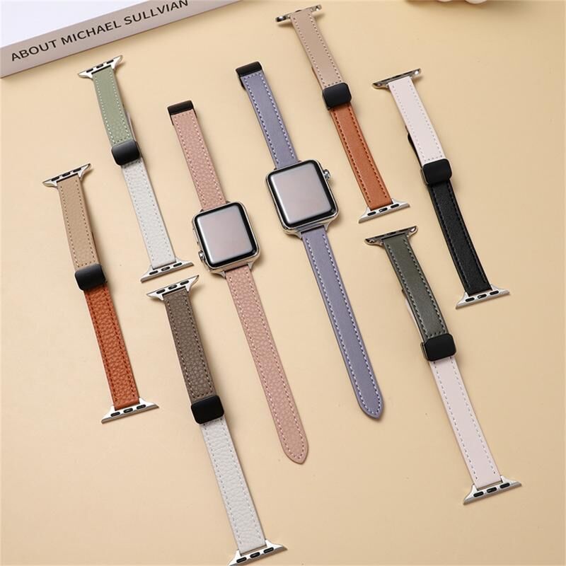 Για Apple Watch SE 40mm Λεπτή Μαγνητική Αγκράφα Αυθεντικό Δερμάτινο Λουρί (Απλό Μωβ)
