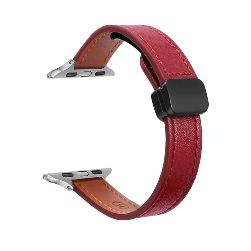 Για Apple Watch SE 40mm Λεπτή Μαγνητική Αγκράφα Αυθεντικό Δερμάτινο Λουρί (Απλό Μωβ)