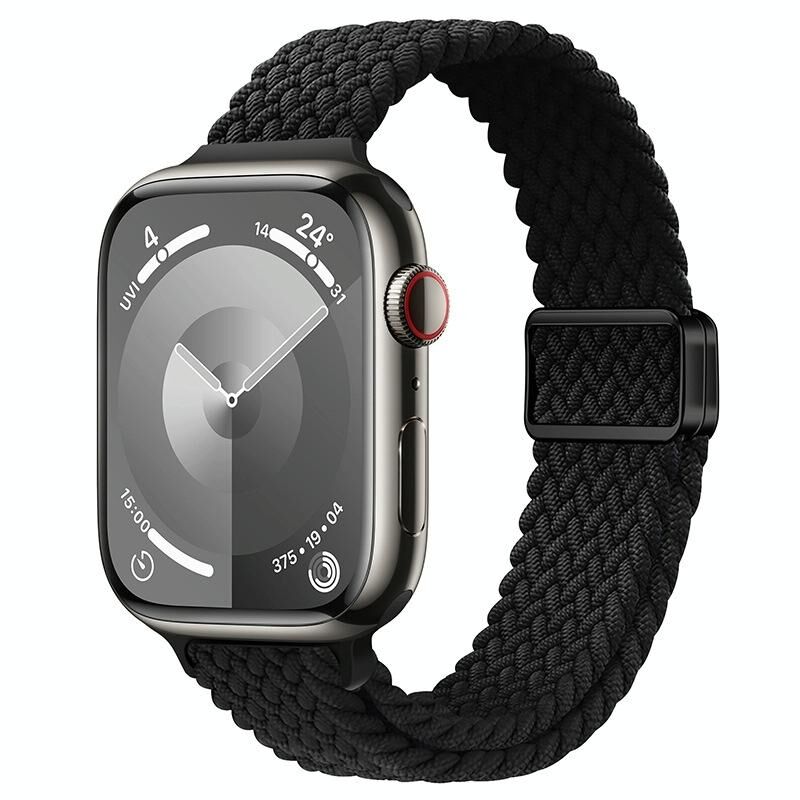 Για Apple Watch SE 40mm Λεπτή Μαγνητική Αγκράφα Νάιλον Πλεκτή Ζώνη Ρολογιού (Μαύρο)