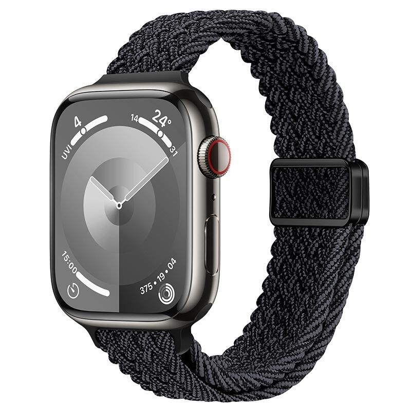 Για Apple Watch SE 40mm Λεπτή Μαγνητική Αγκράφα Νάιλον Πλεκτή Ζώνη Ρολογιού (Μαύρο Γκρι)