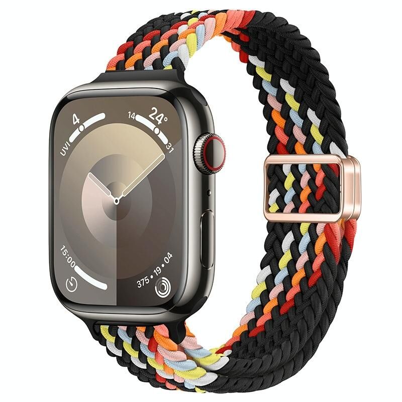 Για Apple Watch SE 40mm Λεπτή Μαγνητική Αγκράφα Νάιλον Πλεκτή Ζώνη Ρολογιού (Σχέδιο Z Λευκό Ουράνιο Τόξο)
