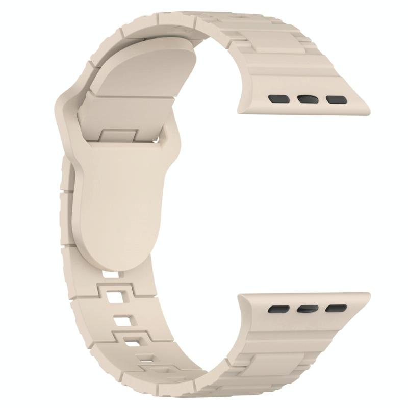 For Apple Watch SE 40mm Square Buckle Armor Style Silicone Watch Band(Ivory White)