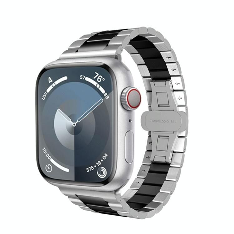 Για Apple Watch SE 40mm Μεταλλικό Μπρασελέ με Αγκράφα Πεταλούδας Τριών Σφαιρών (Ασημί Μαύρο)