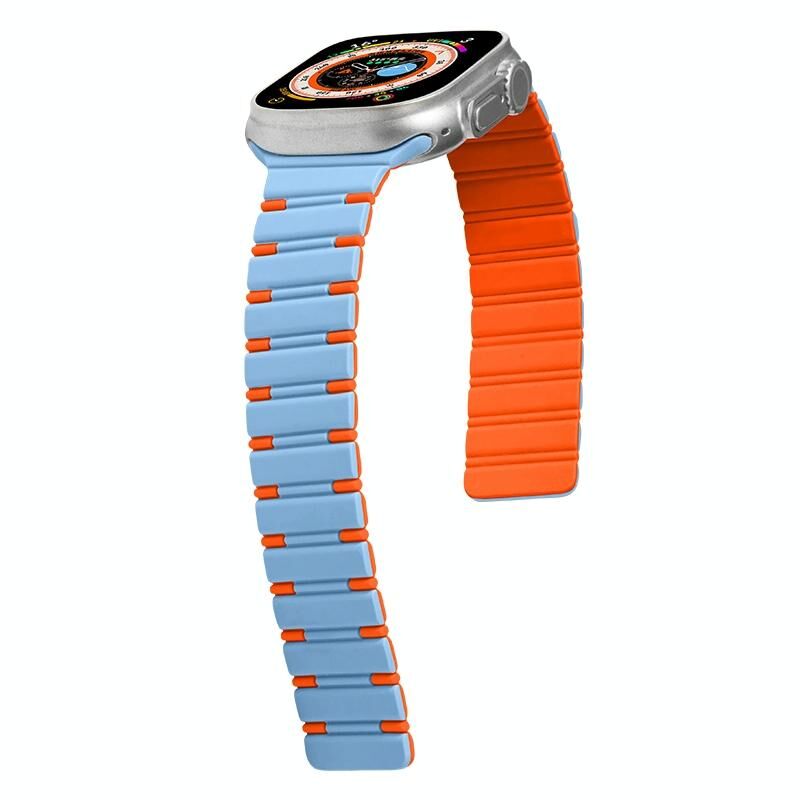 Για Apple Watch SE 40mm Διχρωματικό Μαγνητικό Λουράκι Σιλικόνης (Γαλάζιο Ομίχλης Πορτοκαλί)