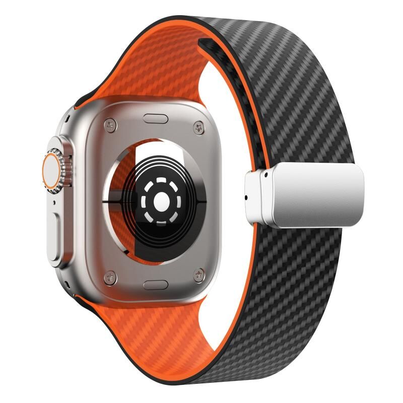 Για Apple Watch SE 44mm Λουρί ρολογιού από ανθρακονήματα με μαγνητική αγκράφα ασημί (Μαύρο Πορτοκαλί)