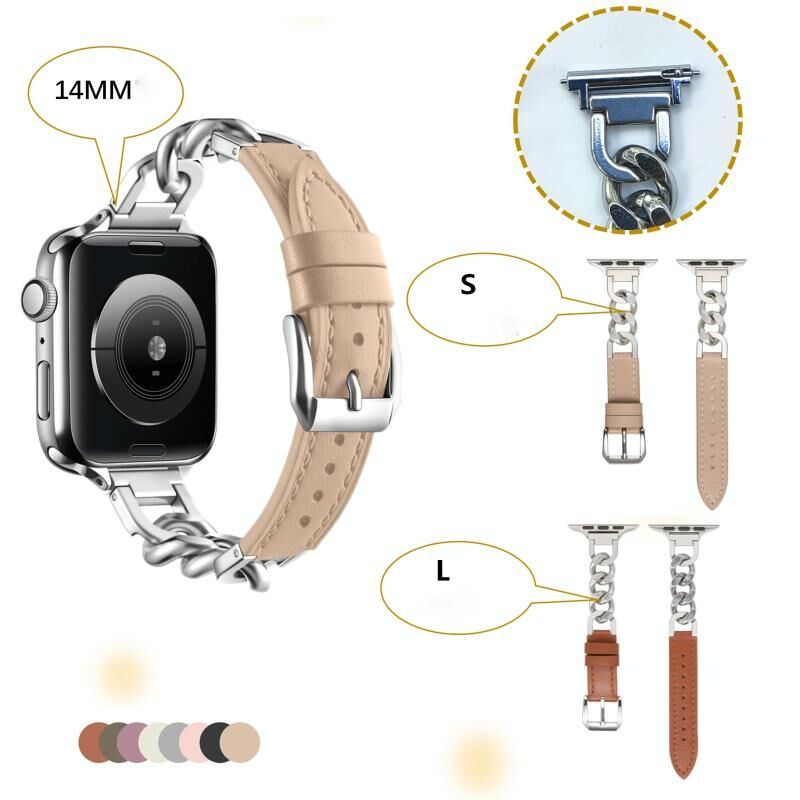 Για Apple Watch SE 44mm Αλυσίδα Αυθεντικό Δερμάτινο Λουρί, Μέγεθος: S (Ροζ χρυσός)