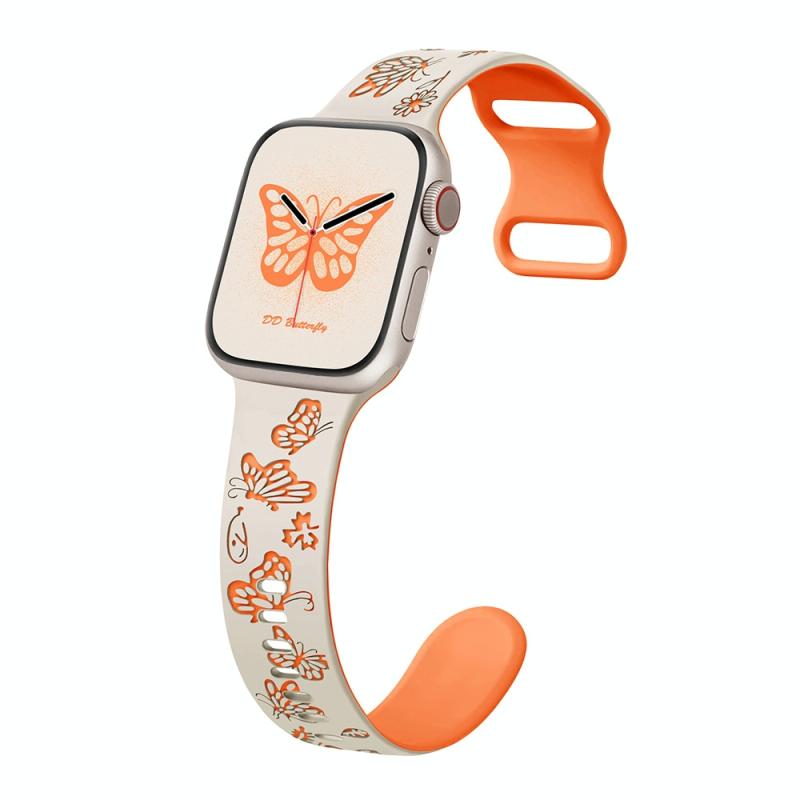 Για Apple Watch SE 44mm Έγχρωμο Μοτίβο Πεταλούδας Λουράκι Σιλικόνης για Ρολόι με Αγκράφα σε Σχήμα 8 (Αστρόφωτο+Πορτοκαλί)