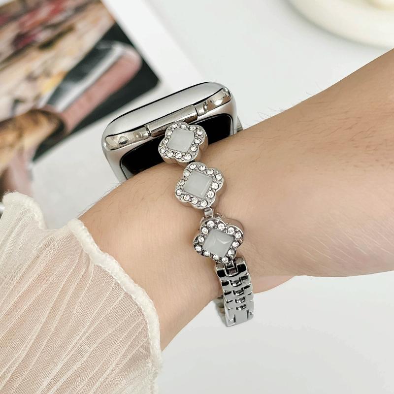 1. Rhinestones four-leaf clover chain and metal combination design strap
