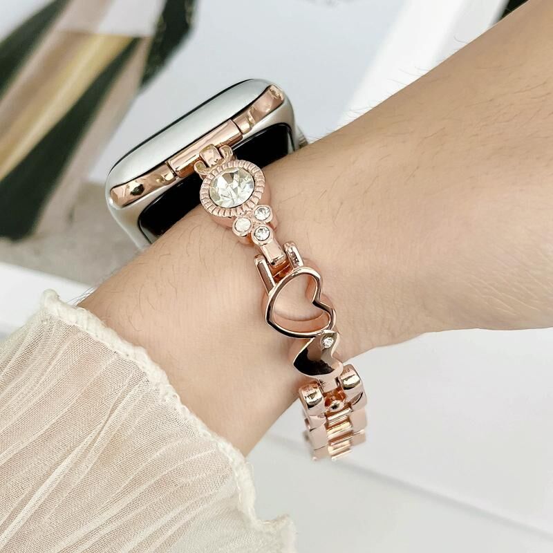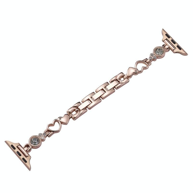 Για Apple Watch SE 44mm Διαμαντένιες Καρδιές Μεταλλική Αλυσίδα για Λουράκι Ρολογιού (Ροζ χρυσός)