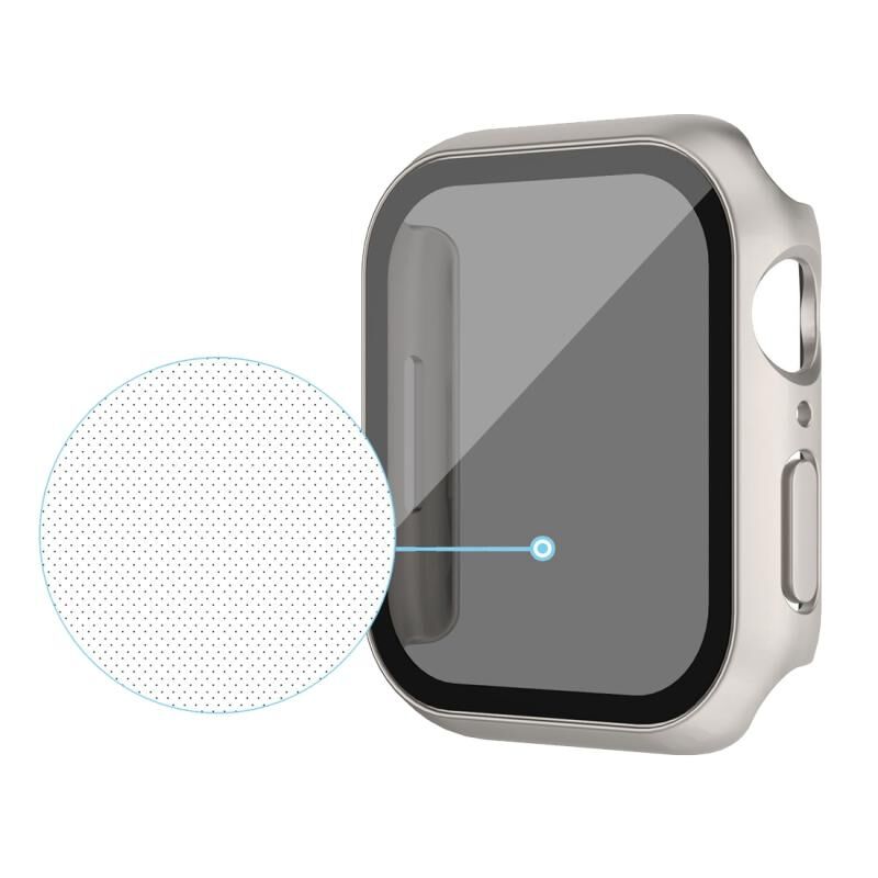 For Apple Watch SE 44mm Frosted PC + Anti-spy Tempered Film Integrated Watch Protective Case(Starlight Silver)