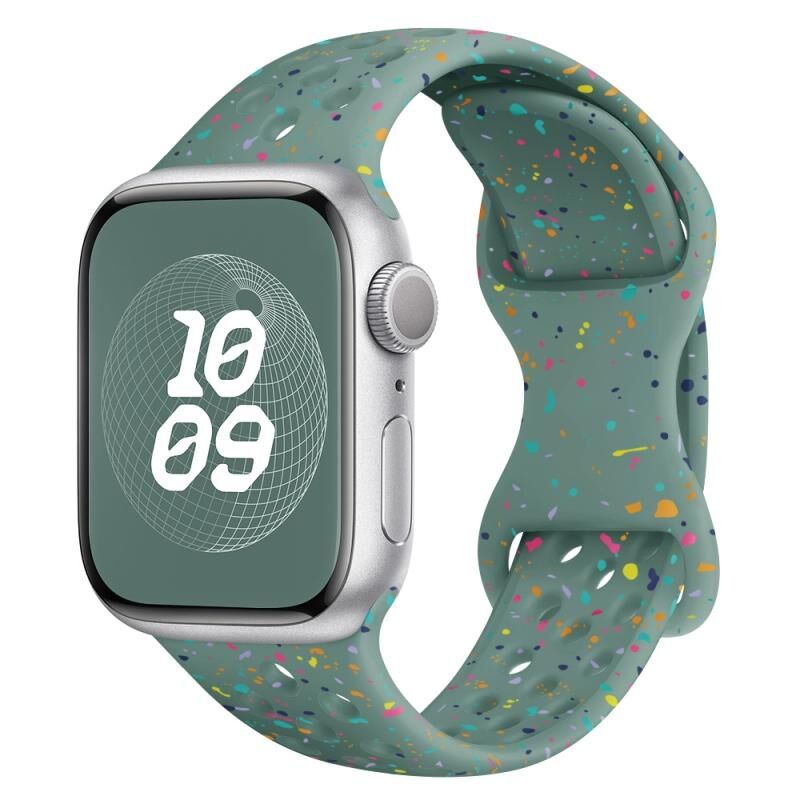 Για Apple Watch SE 44mm Λουράκι Σιλικόνης με Στυλ Τρύπας και Αγκράφα Πεταλούδας Καμουφλάζ (Πράσινο πεύκου)