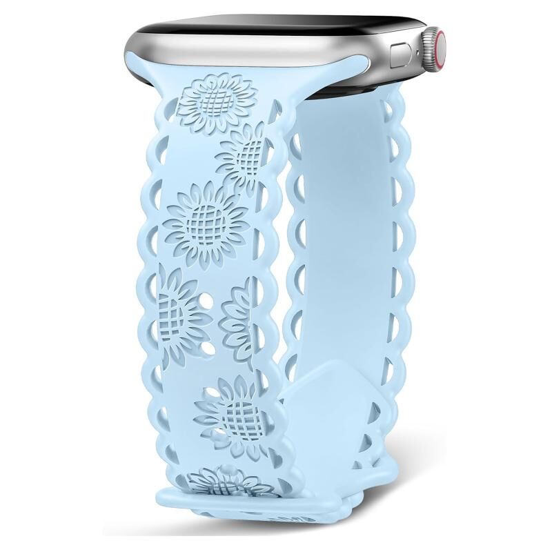 Για Apple Watch SE 44mm Λουρί Σιλικόνης με Δαντέλα και Χαραγμένο Ηλιάνθου (Μαύρο)