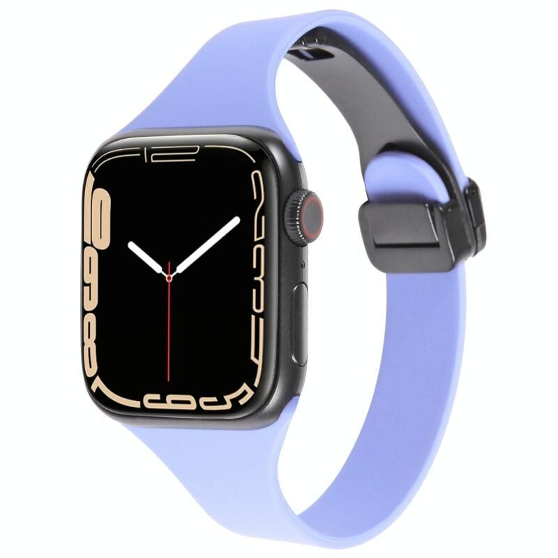 Για Apple Watch SE 44mm Μαγνητικό Κούμπωμα Λεπτό Λουράκι Σιλικόνης για Ρολόι (ανοιχτό μωβ)