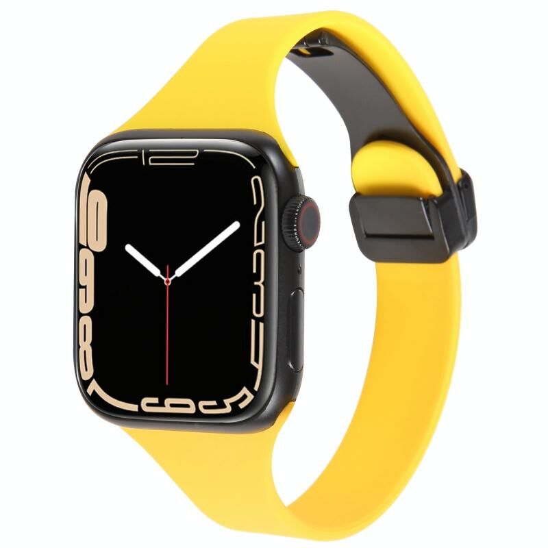 Για Apple Watch SE 44mm Μαγνητικό Κούμπωμα Λεπτό Λουράκι Σιλικόνης για Ρολόι (Κίτρινο)