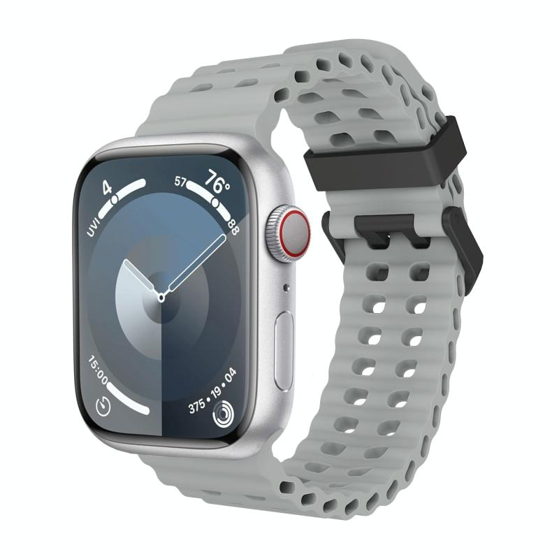 For Apple Watch SE 44mm Ocean Dual-Row Hole Silicone Watch Band(Cloudy Gray)