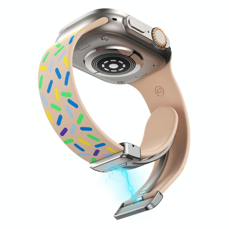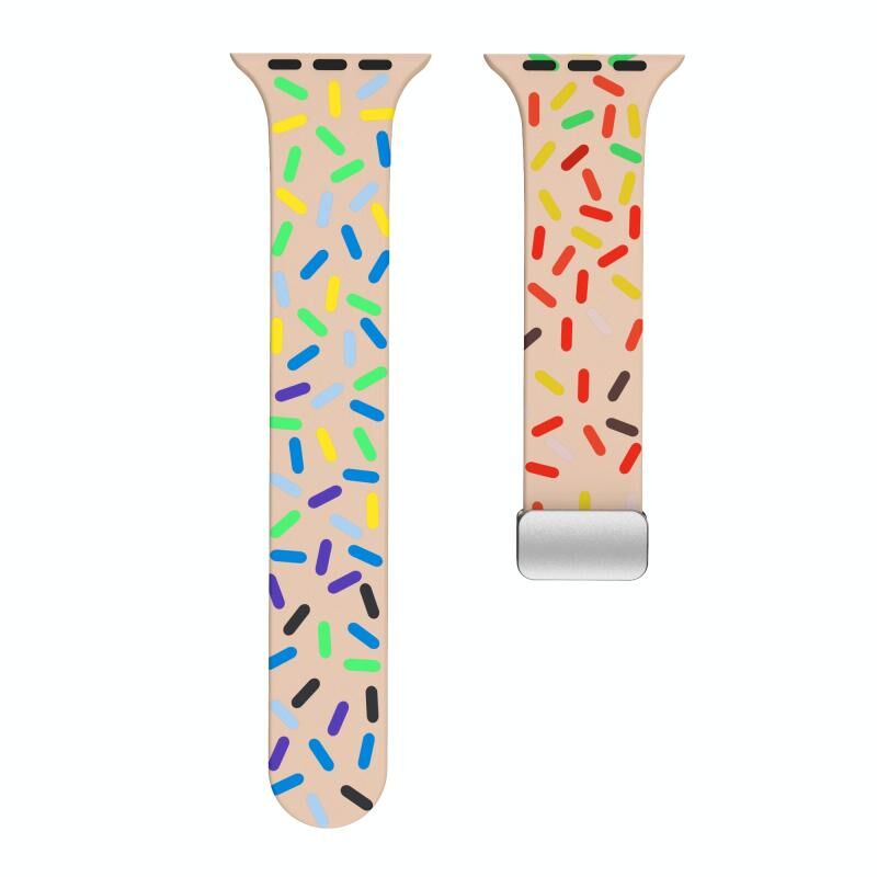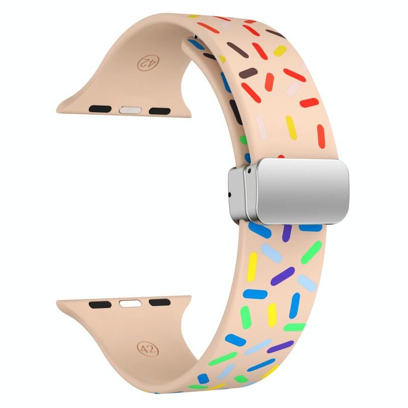 Για Apple Watch SE 44mm Λουράκι ρολογιού σιλικόνης Rainbow Dots με μαγνητικό κούμπωμα (Λευκό)
