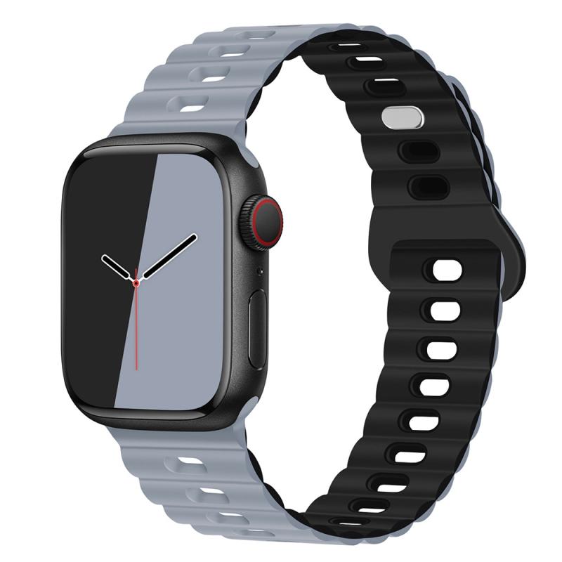 Για Apple Watch SE 44mm Λουρί Σιλικόνης Αναπνεύσιμο με Αγκράφα Αντιστροφής (Μαύρο Γκρι Οψιδιανού)