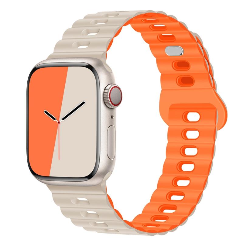 Για Apple Watch SE 44mm Λουρί Σιλικόνης Αναπνεύσιμο με Αγκράφα Αντιστροφής (Πορτοκαλί Αστερόφωτο)