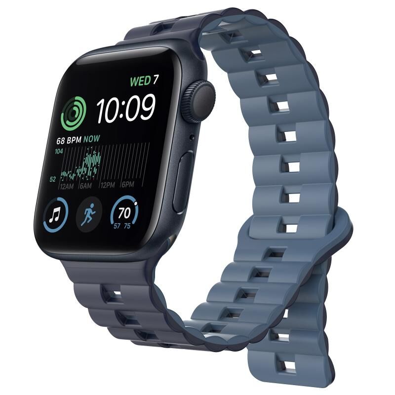 For Apple Watch SE 44mm Reverse Buckle Two Color Magnetic Silicone Watch Band(Dark Blue+Light Blue)